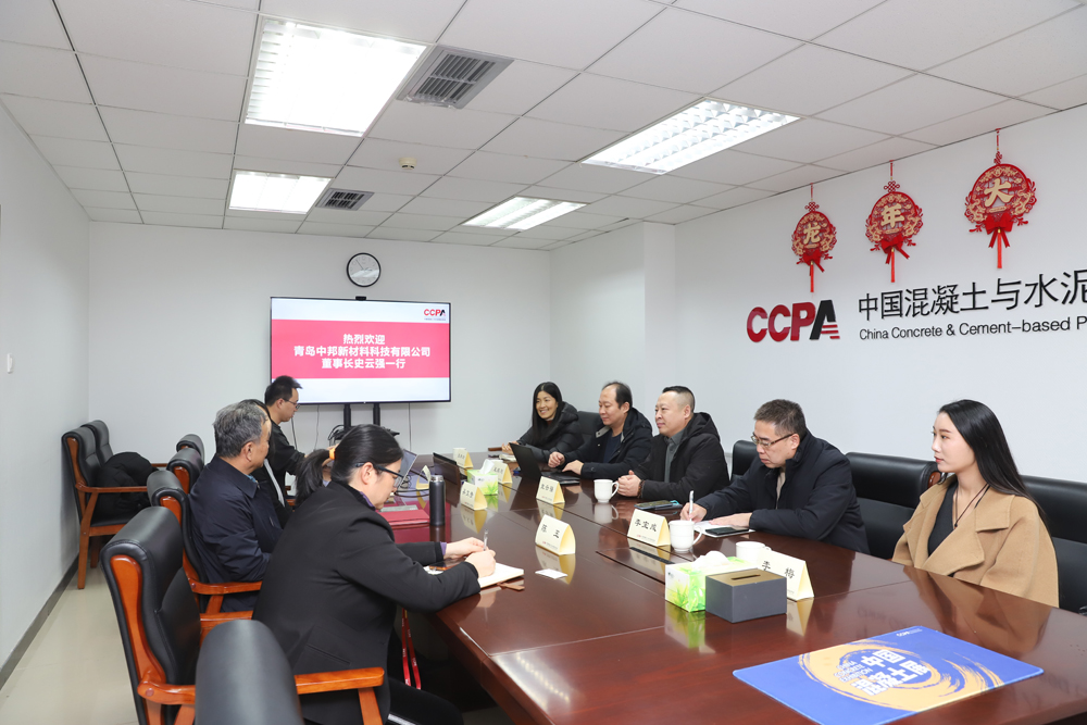 2024年12月12日,中邦科技董事長史云強、青島理工大學王鵬剛教授等一行五人到訪中國混凝土與水泥制品協會,受到協會執行會長吳文貴、副秘書長張慶歡、陳玉、標準部徐曦主任的熱烈歡迎,并一起進行了座談交流。